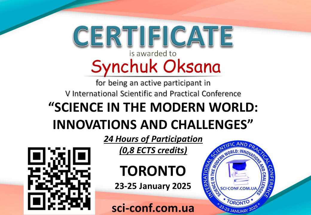 - Синьчук О.М., Босак О.І. Готовність сучасного педагога до інноваційної педагогічної діяльності як наукова проблема. Science in the modern world: innovations and challenges. Proceedings of the 5th International scientific and practical conference. Perfect Publishing. Toronto, Canada. 2025. Pp. С. 287-296. URL: https://sci-conf.com.ua/v-mizhnarodna-naukovo-praktichna-konferentsiya-science- in-the-modern-world-innovations-and-challenges-23-25-01-2025-toronto-kanada-arhiv/.