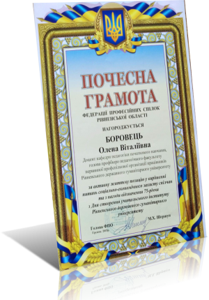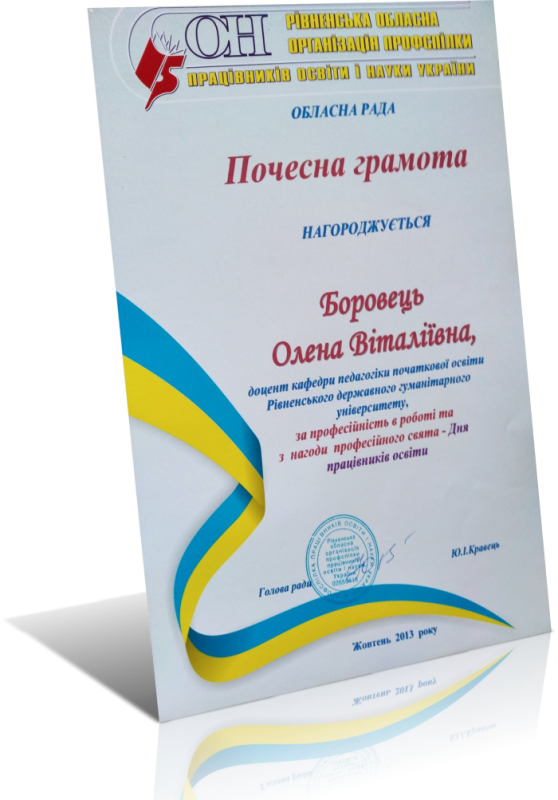 Почесна грамота Рівненської обласної організації профспілки працівників освіти і науки України (2013)