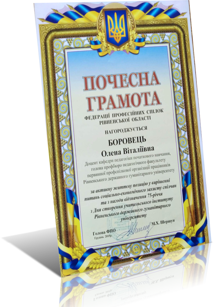 Почесна грамота Федерації профспілок Рівненської області (2015)