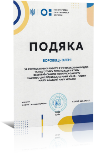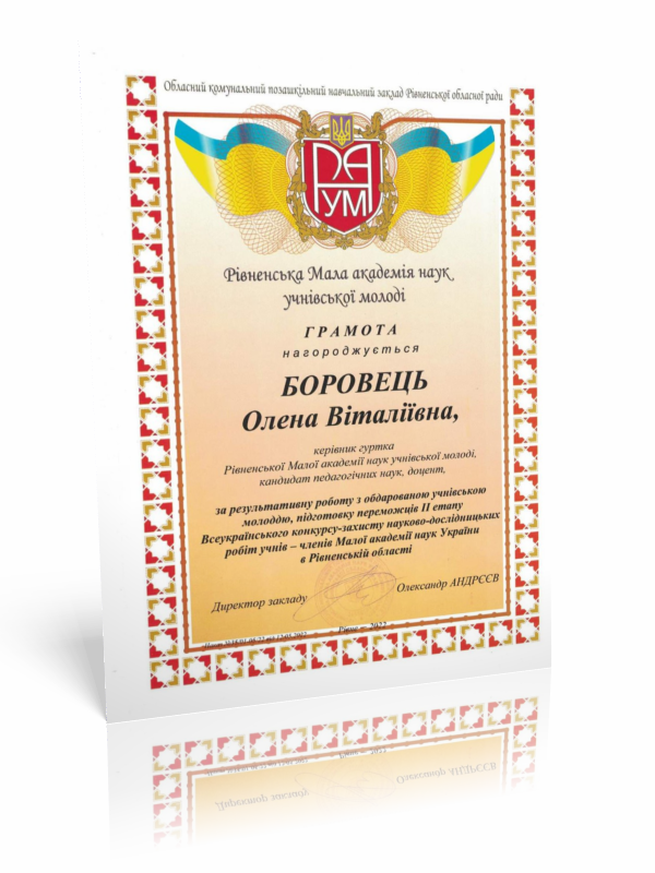 Грамота Рівненської Малої академії наук учнівської молоді (2022)