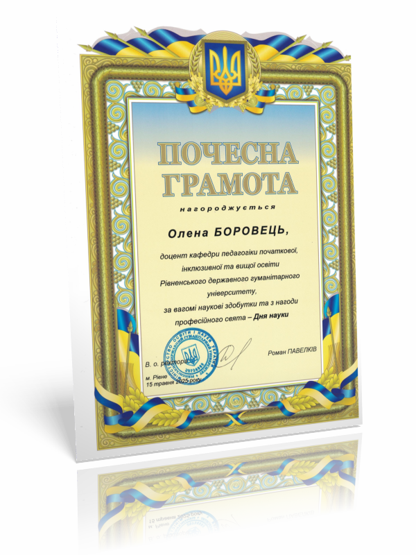 Боровець О. Ранкові зустрічі в Новій українській школі: дидактичний аспект. Професійний розвиток педагога: збірник матеріалів Всеукраїнської науково-практичної конференції, м. Рівне, 28 квітня 2022 р. Рівне: РДГУ, С. 15-16.