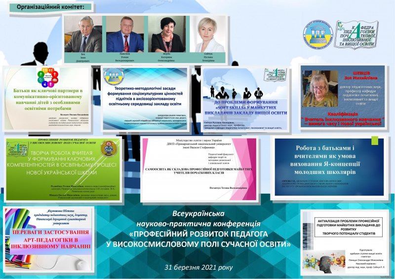 31 березня 2021 року відбулася Всеукраїнська науково-практична конференція «Професійний розвиток педагога у високосмисловому полі сучасної освіти». Організатори конференції – Інститут проблем виховання НАПН України, Рівненський державний гуманітарний університет (кафедра педагогіки початкової, інклюзивної та вищої освіти, Освітньо-ресурсний центр).