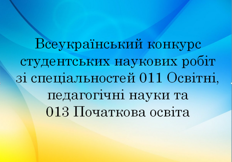 Всеукраїнський конкурс студентських наукових робіт зі спеціальностей 011 Освітні, педагогічні науки та 013 Початкова освіта