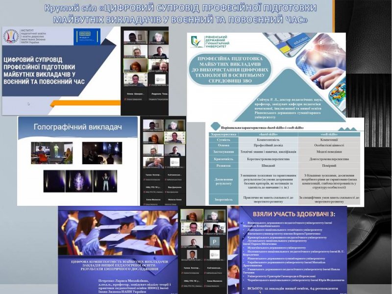 26 жовтня 2023 року відбувся Круглий стіл «ЦИФРОВИЙ СУПРОВІД ПРОФЕСІЙНОЇ ПІДГОТОВКИ МАЙБУТНІХ ВИКЛАДАЧІВ У ВОЄННИЙ ТА ПОВОЄННИЙ ЧАС» в межах П'ятнадцятої міжнародної виставки «Інноватика в сучасній освіті» за ініціативи відділу теорії і практики педагогічної освіти Інституту педагогічної освіти і освіти дорослих імені Івана Зязюна Національної академії педагогічних наук України, що об’єднала науковців та науково-педагогічних працівників, гарантів освітньо- професійних програм закладів вищої освіти.