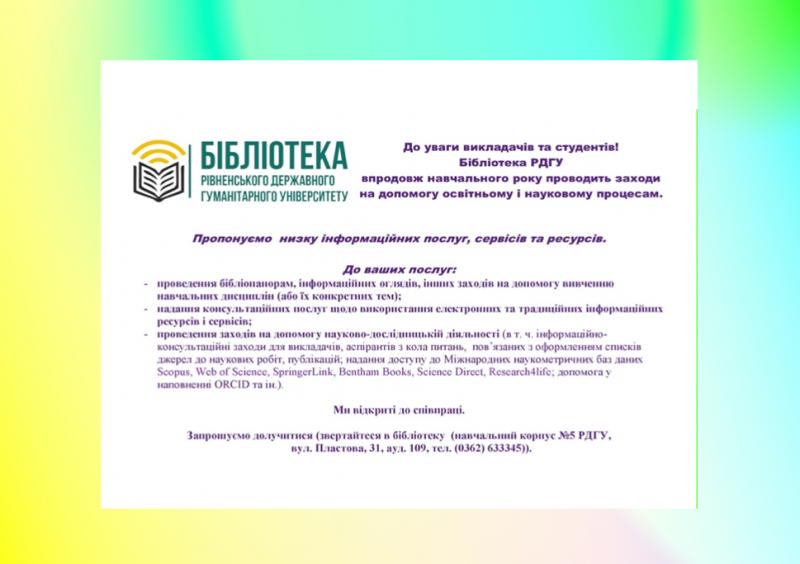Запрошує бібліотека Рівненського державного гуманітарного університету!