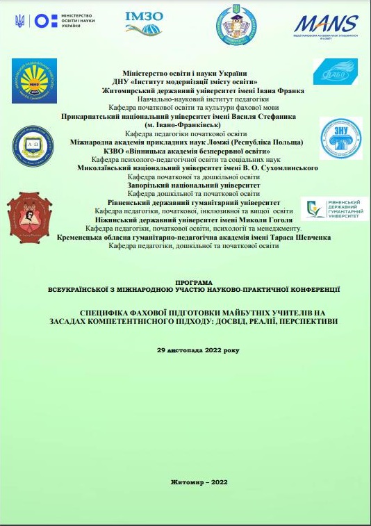 Викладачі кафедри та здобувачі ступеня вищої освіти «магістр» прийняли активну участь у Всеукраїнській з міжнародною участю науково-практичній конференції "Специфіка фахової підготовки майбутніх учителів на засадах компетентнісного підходу: досвід, реалії, перспективи" (м. Житомир, 29 листопада 2022 року) із доповідями: