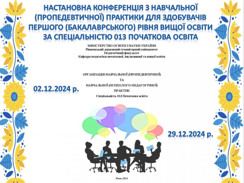 29 листопада 2024 року відбулася настановна конференція з навчальної (пропедевтичної) практики для здобувачів першого (бакалаврського) рівня вищої освіти за спеціальністю 013 Початкова освіта.