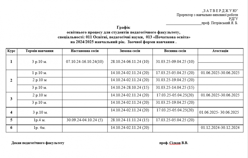 Графік освітнього процесу для здобувачів (заочна форма навчання) на 2024-2025 н.р.